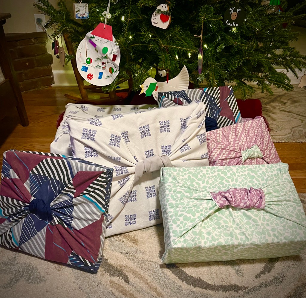 We are thrilled about our upcycled, reusable gift wrap. Each wrap is handmade and only secondhand textiles are used. Our hope is that you are inspired towards creativity, cultivating memories, and stewarding the gifts we’ve been given. Browse the gallery for inspiration, or check out the tutorials tab!
